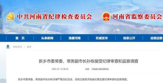 据河南省纪委监委消息:新乡市委常委、常务副市长孙栋涉嫌严重违纪违法,目前正接受河南省纪委监委纪律审查和监察调查。
